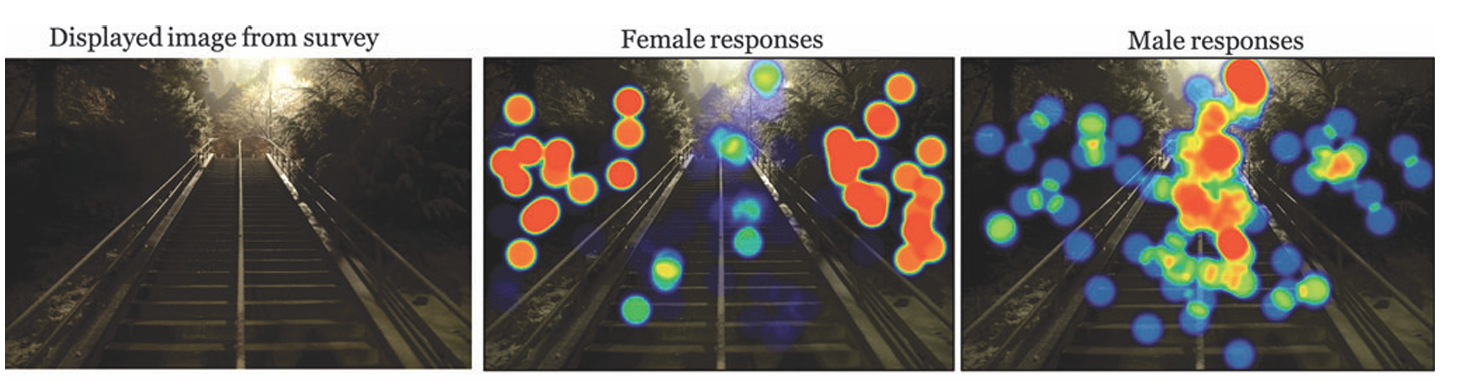 Things that are considered subtle like sunset conditions increase perceptions of danger and pose greater risk for women who commute or exercise at night (Boomsma and Steg, 2014). Fear associated with night-time, or poorly lit, commuting has been shown to negatively impact female students’ physical, emotional, and social health (Burdette and Needham, 2012; Larson et al., 2013; Park and Garcia, 2020).